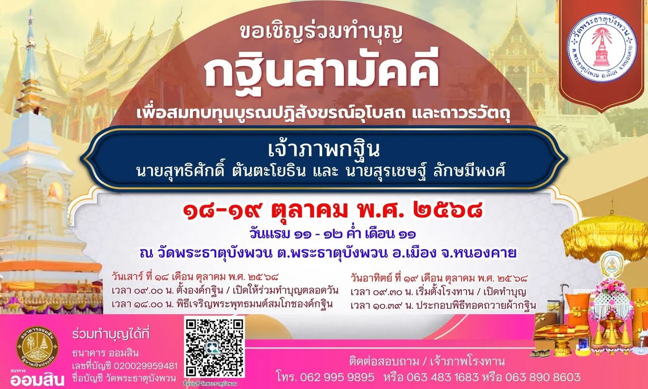 >>>>>องค์การบริหารส่วนตำบลพระธาตุบังพวน บ้านเลขที่ 278 หมู่ 5 บ้านดอนหมู อำเภอเมืองหนองคาย จังหวัดหนองคาย 43100 โทร. : 086-4598121 E-Mail : [email protected]<<<<<