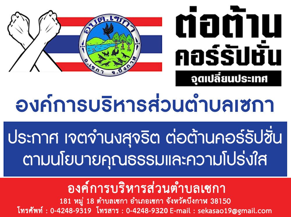 ข้อมูลเผยแพร่ของ อบต.เซกา เพื่อคุณธรรมและความโปร่งใส (Integrity and Transparency Assessment)