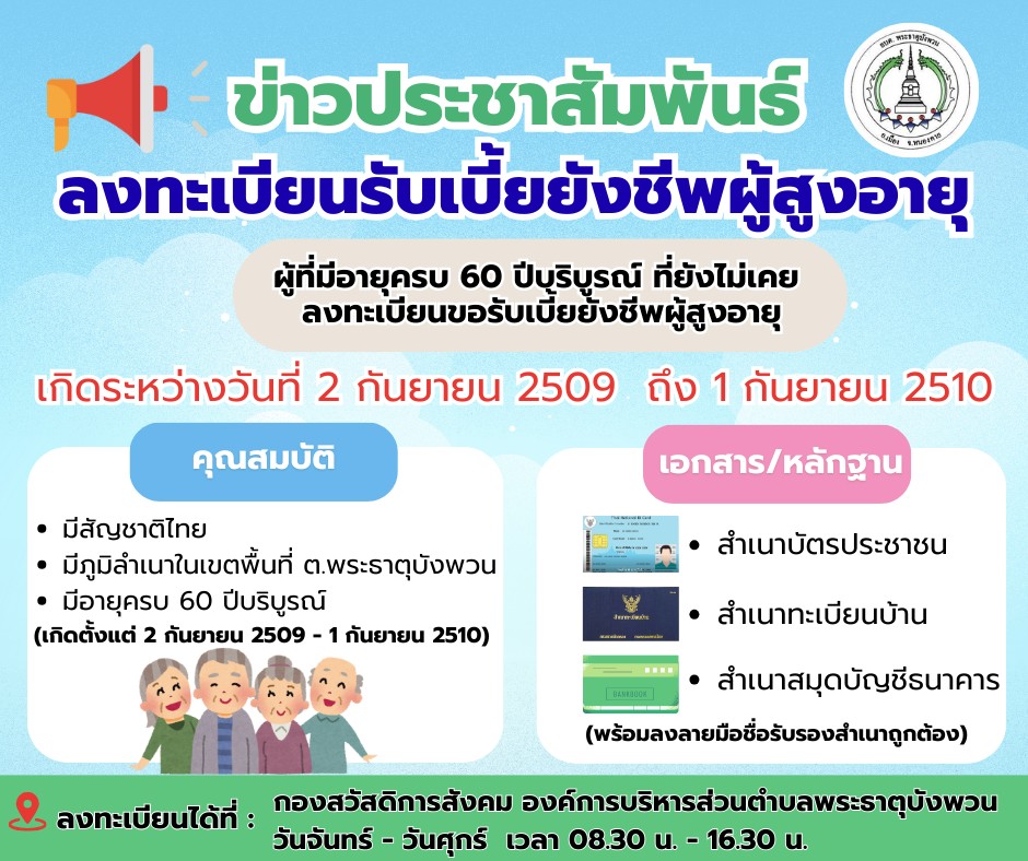 ประชาสัมพันธ์การลงทะเบียนผู้สูงอายุ ประจำปีงบประมาณ พ.ศ. 2570