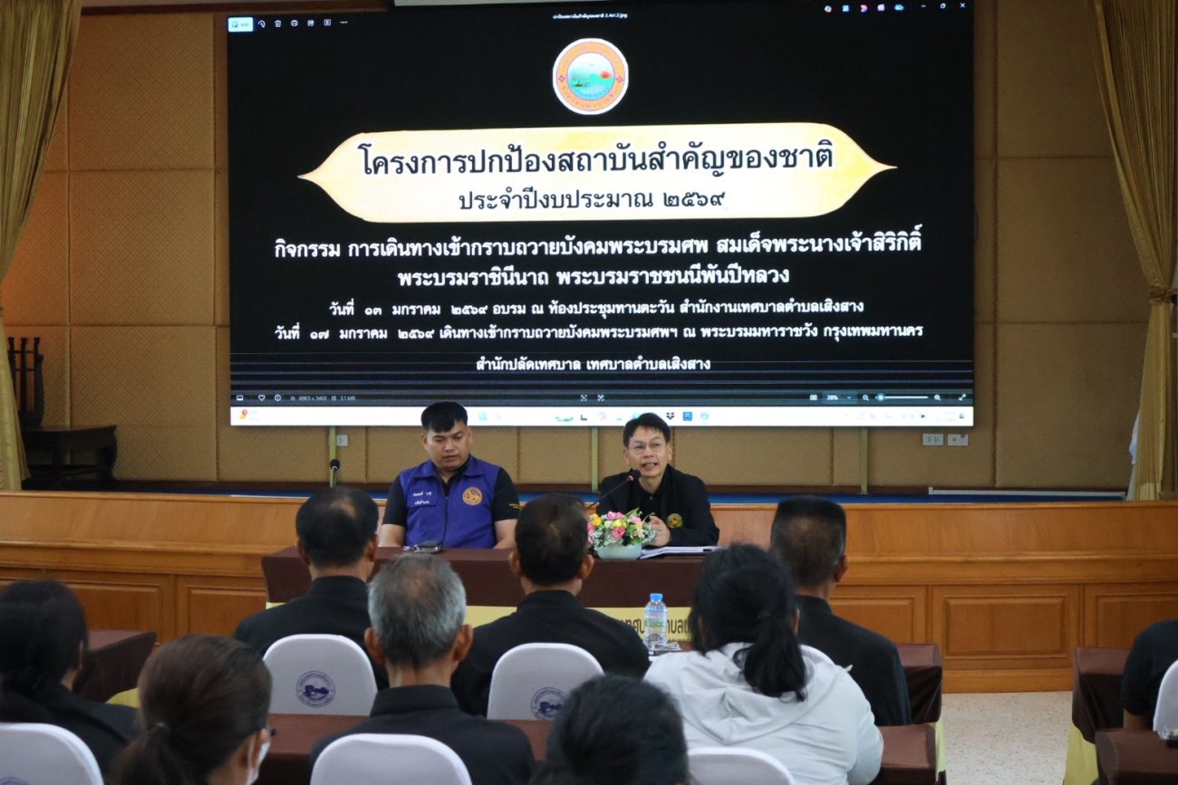 นางสาวสุวรรณ คูประทุมศิริ นายกเทศมนตรีตำบลเสิงสาง มอบหมาย นายจุมพล คูประทุมศิริ รองนายกเทศมนตรีตำบลเสิงสาง เป็นประธานเปิดโครงการปกป้องสถาบันสำคัญของชาติ ประจำปีงบประมาณ 2569 กิจกรรมการเดินทางเข้ากราบถวายบังคมพระบรมมาศพ สมเด็จพระนางเจ้าสิริกิติ์ พระบรมราชินีนาถ พระบรมราชชนนีพันปีหลวง เพื่อให้ประชาชนเรียนรู้พระราชกรณียกิจ และแสดงออกซึ่งความเคารพ เทิดทูน ปกป้อง และแสดงความจงรักภักดีต่อสถาบันพระมหากษัตริย์ โดยมีผู้เข้าร่วมรับการฝึกอบรมจำนวน 45 คน ณ ห้องประชุมทานตะวัน สำนักงานเทศบาลตำบลเสิงสาง