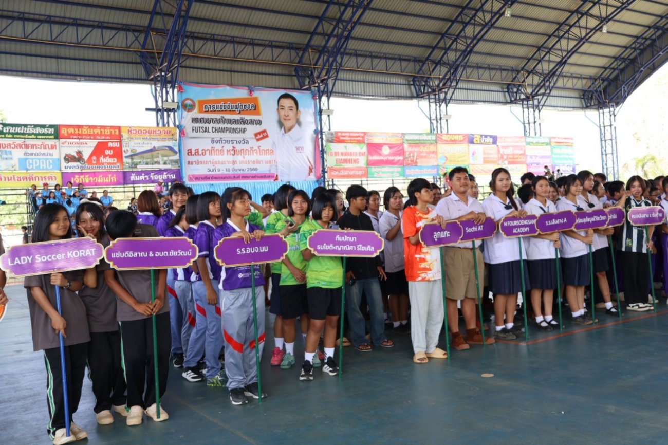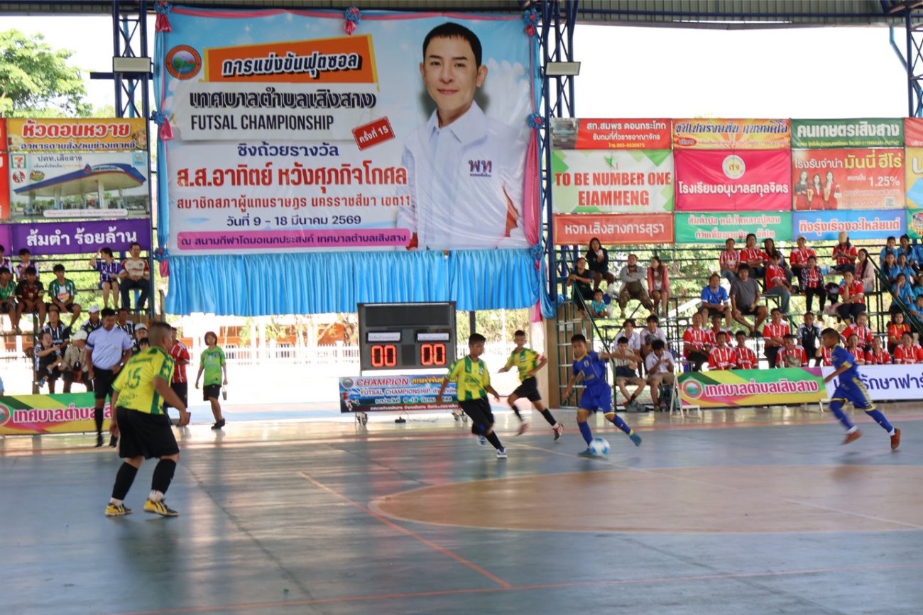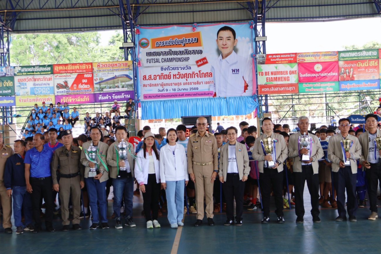 นายอภิชัย จันทร์มา นายอำเภอเสิงสาง เป็นประธานเปิดการแข่งขันกีฬาฟุตซอล “futsal championship” เทศบาลตำบลเสิงสางต้านยาเสพติด ครั้งที่ 15 ประจำปีงบประมาณ 2569 พร้อมด้วย นางสาวอนัญญา วณิชชากุลจิต ผู้เชี่ยวชาญประจำตัวสมาชิกสภาผู้แทนราษฎร จังหวัดนครราชสีมา เขต 11 (สส.อาทิตย์ หวังศุภกิจโกศล) โดยมีนางสาวสุวรรณ คูประทุมศิริ นายกเทศมนตรีตำบลเสิงสาง กล่าวรายงาน โอกาสนี้ คณะผู้บริหารและสมาชิกสภาเทศบาลฯ ให้การต้อนรับ ผู้นำองค์กรปกครองส่วนท้องถิ่น ฝ่ายปกครอง หัวหน้าส่วนราชการ ร่วมเป็นเกียรติในพิธีเปิดในครั้งนี้ ณ โดมอเนกประสงค์เทศบาลตำบลเสิงสาง