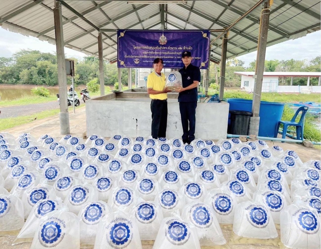 วันศุกร์ที่ 22 สิงหาคม 2568 เวลา 09:30 น. ว่าที่ร้อยตรีณัฐภัทร คำชาลี นายก อบต.บัวน้อย พร้อมด้วยคณะผู้บริหาร และเจ้าหน้าที่ อบต.บัวน้อย ได้เข้ารับมอบพันธุ์ปลา ซึ่งได้รับการสนับสนุนจากหน่วยพัฒนาการเคลื่อนที่ ๕๓ สำนักงานพัฒนาภาค ๕ หน่วยบัญชาการทหารพัฒนา ตามโครงการสนับสนุนพันธุ์ปลาเพื่อแจกจ่ายให้กับราษฎร 72 ล้านตัว เฉลิมพระเกียรติพระบาทสมเด็จพระเจ้าอยู่หัว เนื่องในโอกาสมหามงคลเฉลิมพระชนมพรรษา 72 พรรษา 28 กรกฏาคม 2567 เพื่อปล่อยลงในแหล่งน้ำสาธารณะ และสระน้ำ